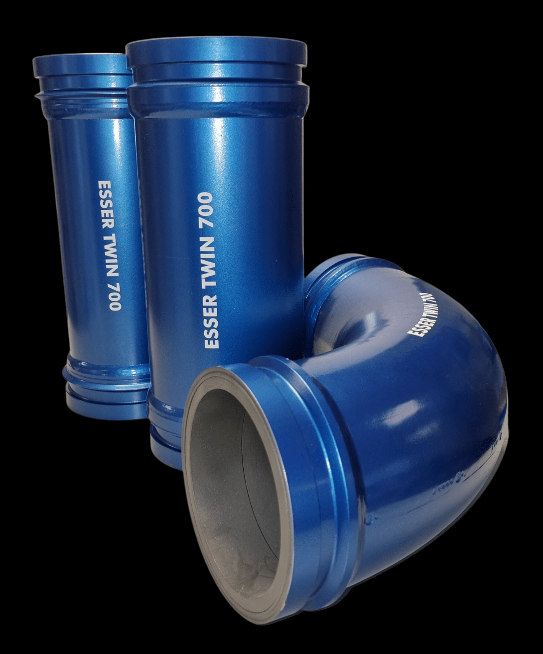 The ESSER TWIN 700 is the abrasion resistant, twin-walled pipe trusted by concrete pumping operations worldwide. Able to handle the highly abrasive concrete mixture as it moves from the concrete pump, the TWIN 700 series withstands severe pressure while protecting the inner wear layer from bending forces.